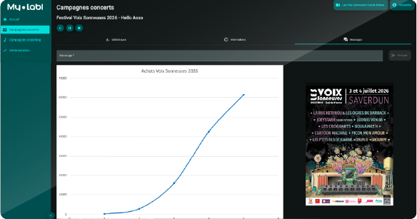 Un support technique par un expert ainsi que des configurations plus avancées (site web, billetterie, merchandising) sont disponibles en option.